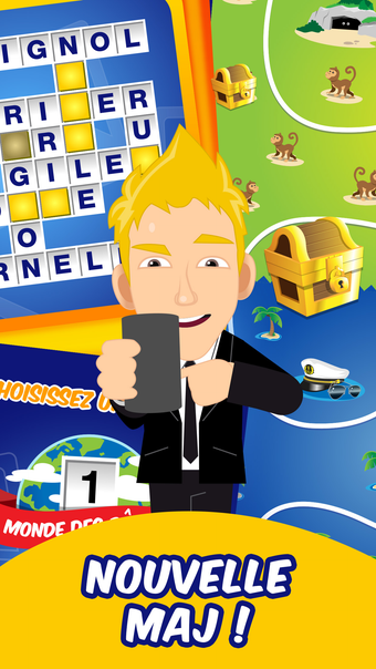 Le jeu offre plusieurs niveaux à travers différents mondes, où les utilisateurs doivent relever des défis thématiques et débloquer des coffres mystères en slammant. Des bonus sont disponibles pour aider les joueurs à terminer les grilles, et la possibilité de comparer sa progression avec celle d'amis sur Facebook ajoute une dimension sociale au jeu. Slam combine ainsi amusement et apprentissage, faisant de chaque session un moment enrichissant.